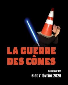 Des supplémentaires de leur succès La Guerre des Cônes se tiendra au Théâtre de la Comédie de Montréal les 6 et 7 février prochain.