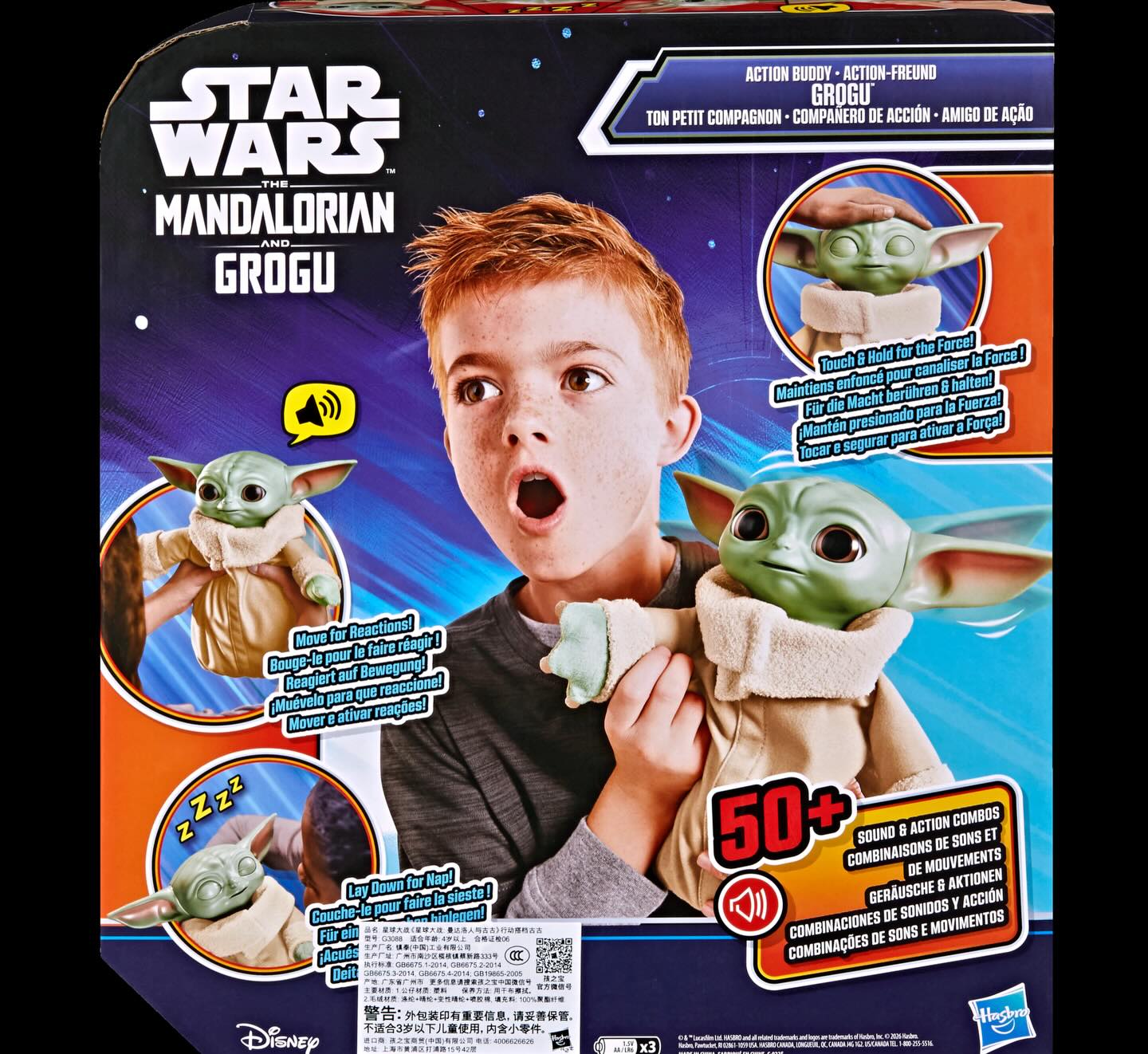 Cette figurine de 26 centimètres propose plus de 50 combinaisons de sons et mouvements, permettant à Grogu de bouger la tête, fermer les yeux et produire ses petits son