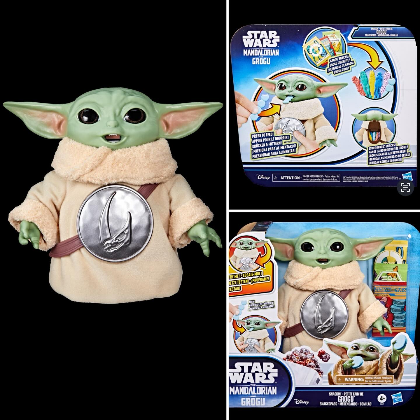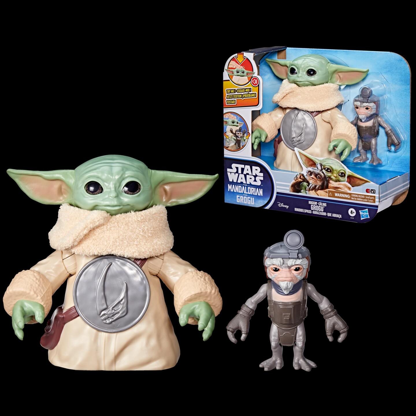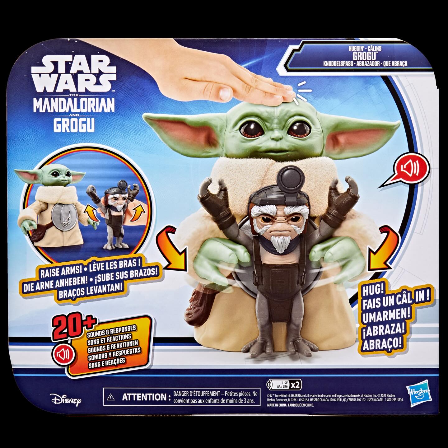 Cette version plus compacte, disponible exclusivement chez Walmart aux Etats-Unis propose une interaction originale : en appuyant sur la tête de Grogu, ses bras se déplacent pour faire un câlin à la figurine Anzellan fournie, avec effets sonores inclus. Ce jouet est vendu environ 40 euros.