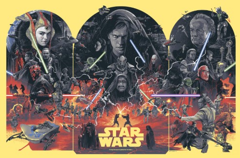 Le triptyque reprenant les 3 premiers épisodes de la saga Skywalker réalisé par Gadz sera mis en vente d’ici quelques heures (18h00) sur le site de Bootleneck Gallery.