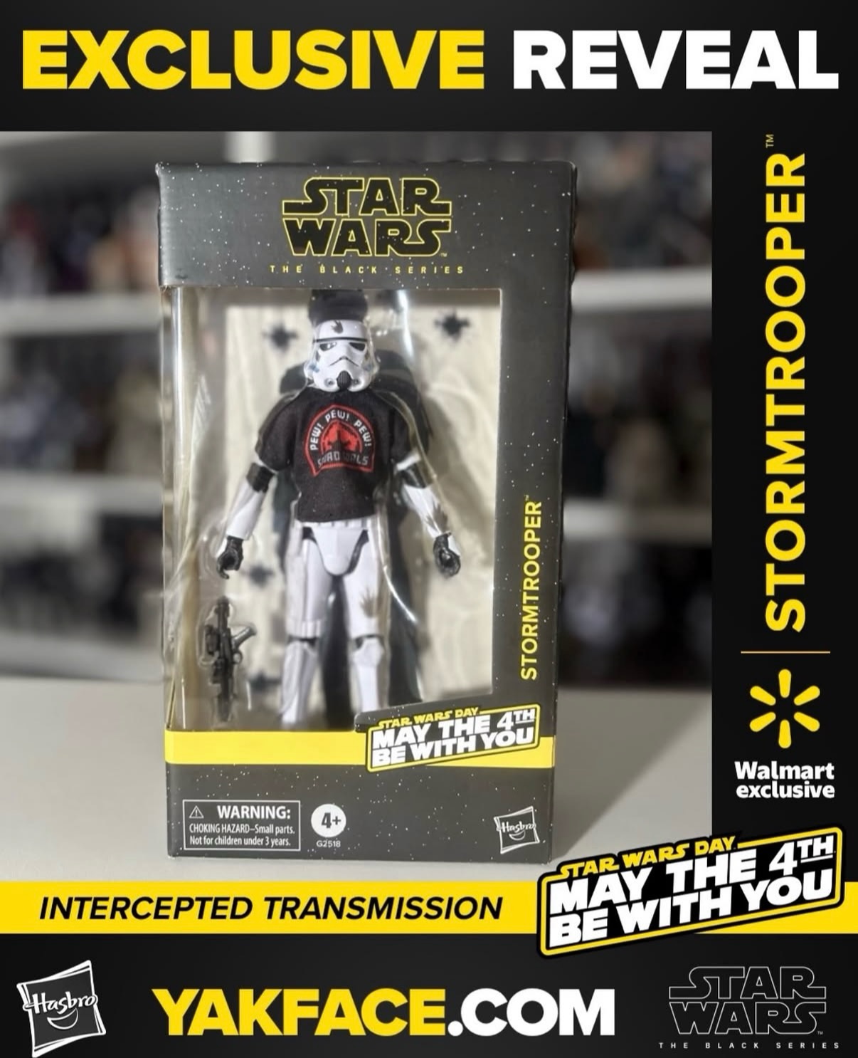 Nos confrères de Yakface a révélé une image d’une prochaine figurine Hasbro Star Wars: The Black Series avec le Star Wars Day Stormtrooper, encore non officiellement annoncée. Ce Stormtrooper exclusif à Walmart présente des détails originaux : dégâts de blaster, tee-shirt amovible avec « Pew! Pew! Pew! Squad Goals » sur le devant et le logo « May the 4th Be With You » au dos, ainsi qu’un stand de tir avec une silhouette de Han Solo.