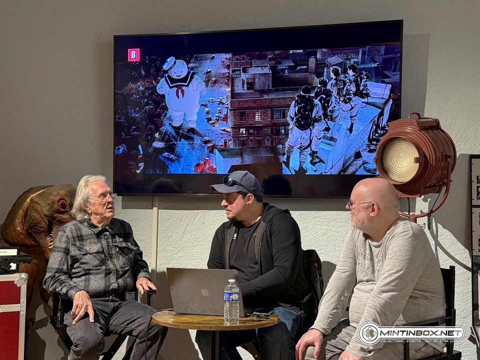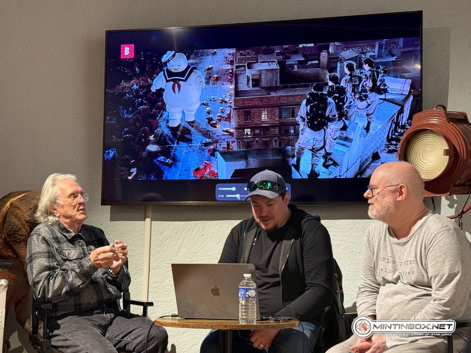 Près de 40 minutes se sont écoulées lorsque l’on quitte l’univers de Star Wars pour revenir sur un autre film marquant de la carrière de Richard Edlund : Ghostbusters. Tout comme pour Star Wars, il expliqua comment certains effets avaient été réalisés. On apprit notamment que sur la scène mythique avec Stay Puft Marshmallow Man, du sable coloré très fin servit à représenter un jet de fumée ou encore que le ciel maléfique au-dessus de la ville de New York a été réalisé à partir d’un gros réservoir d’eau salée filmé par le dessous. Il en profita également pour nous préciser où se trouvaient les matte-painting qui complétaient le décor.